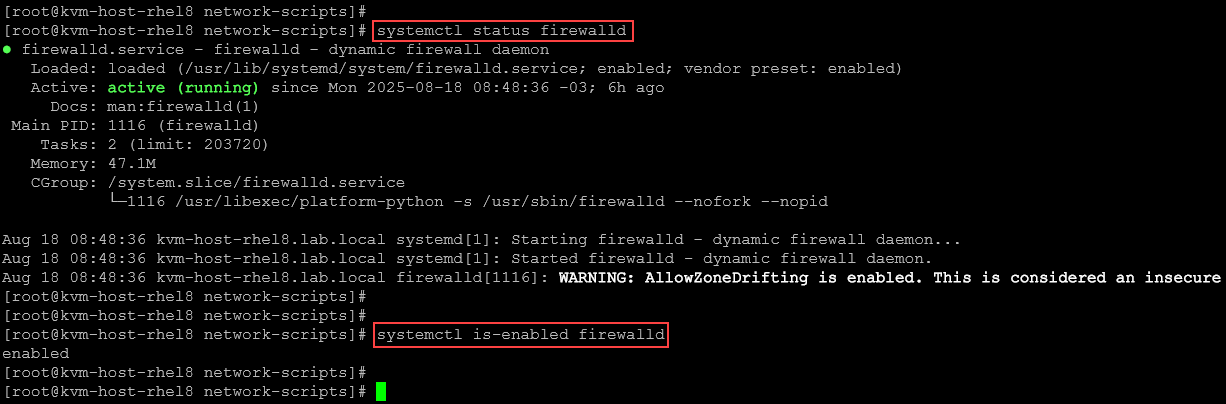 The “firewalld” is the default dynamic firewall manager on RHEL and its derivatives. It abstracts low-level iptables/ip6tables/ebtables rules into zones, services, and rich rules, making firewall administration more intuitive and script-friendly. It is a firewall service that provides a host-based customizable firewall via the D-bus interface.