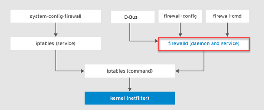 The following picture shows where the firewalld resides and how it interacts with other related components: