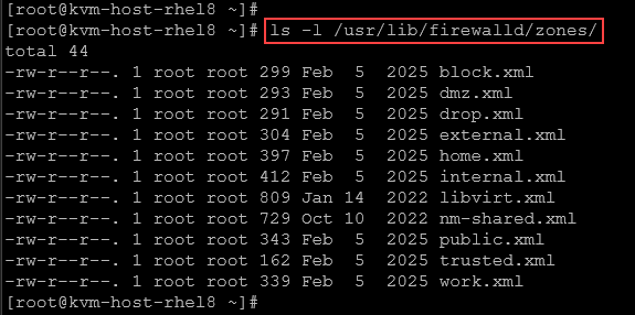 . The default zones are stored under the /usr/lib/firewalld/zones/ directory: