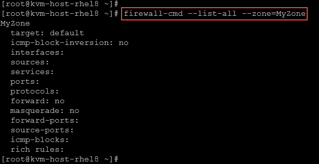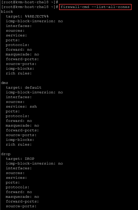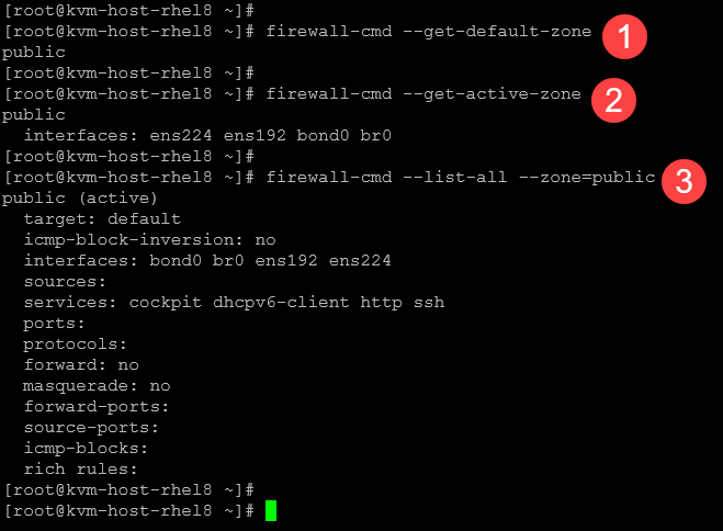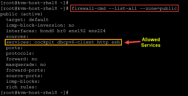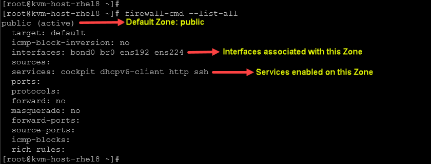 3- Get details of the default zone. In this case, for instance, the default zone is “public”: