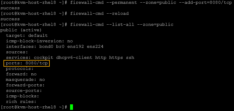 firewall-cmd --permanent --zone=public --add-port=8080/tcp