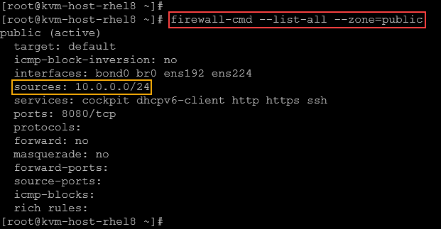 firewall-cmd --zone=public --add-source=10.0.0.0/24