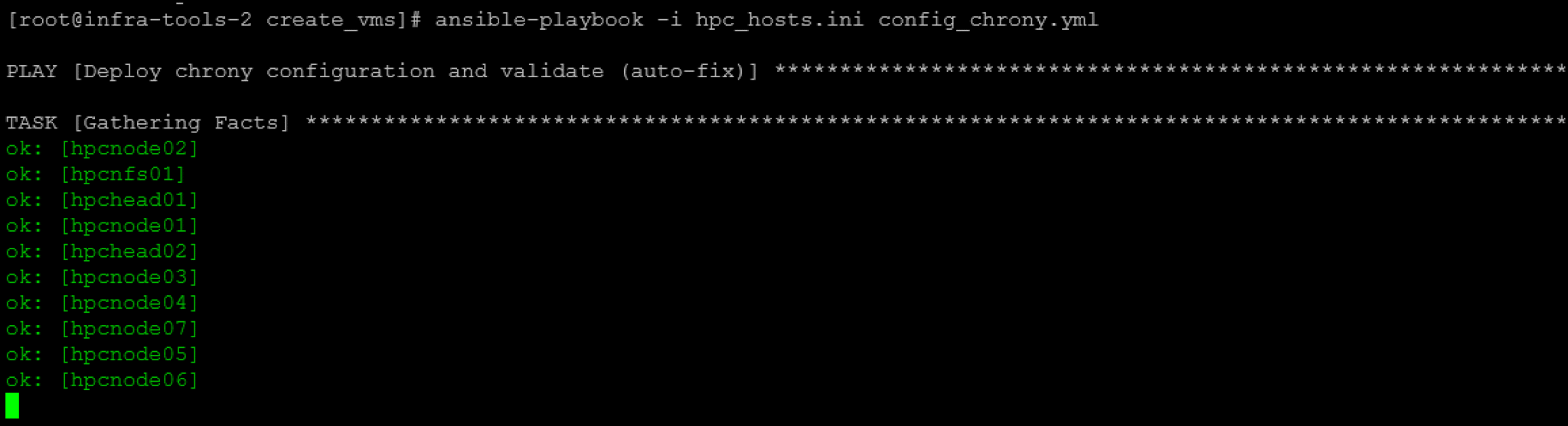 ansible-playbook -i hpc_hosts.ini config_chrony.yml
