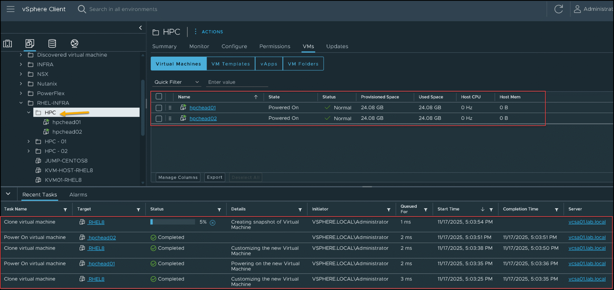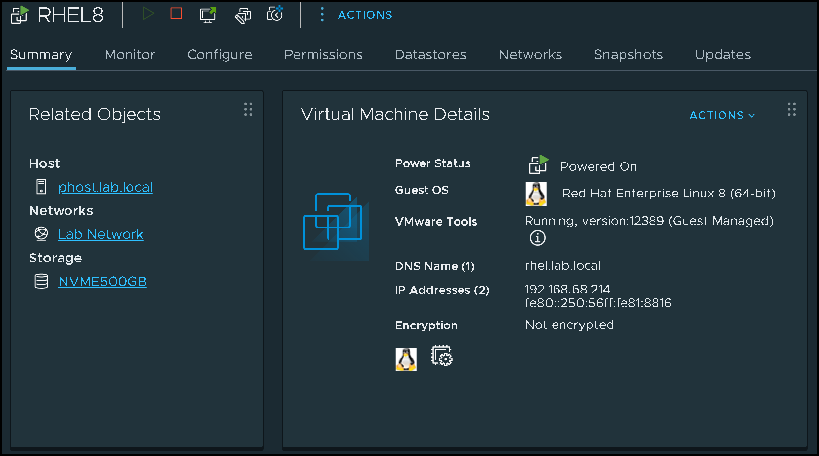 This RHEL VM is our “Template VM”. We’ll use it as a base to create the other VMs.