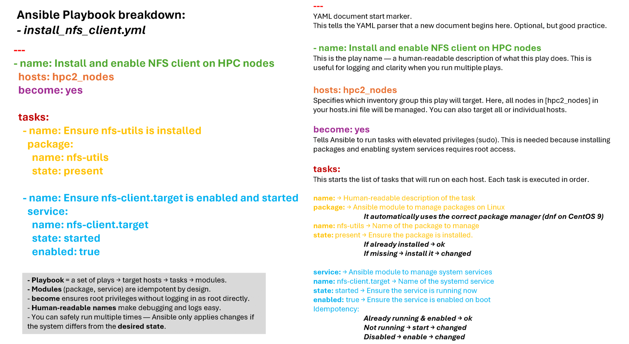 — We could run that same playbook 100 times a day — our cluster would stay correct and nothing would be reinstalled or restarted unless needed.