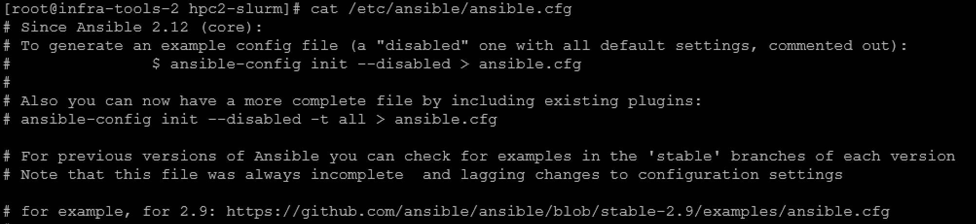 In our case, since we installed Ansible using the package manager, the Ansible configuration file is: