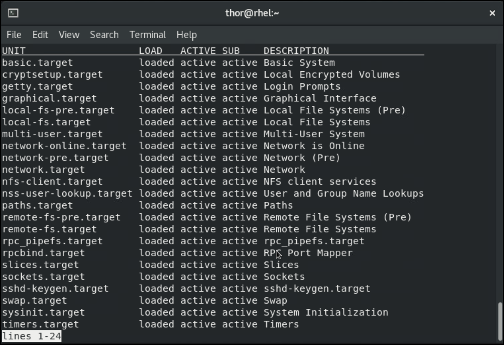 Note: Targets are similar to runlevels from the old SysV init system (such as runlevel 3 or 5), but offer more flexibility. Each target group has a set of services and configurations.