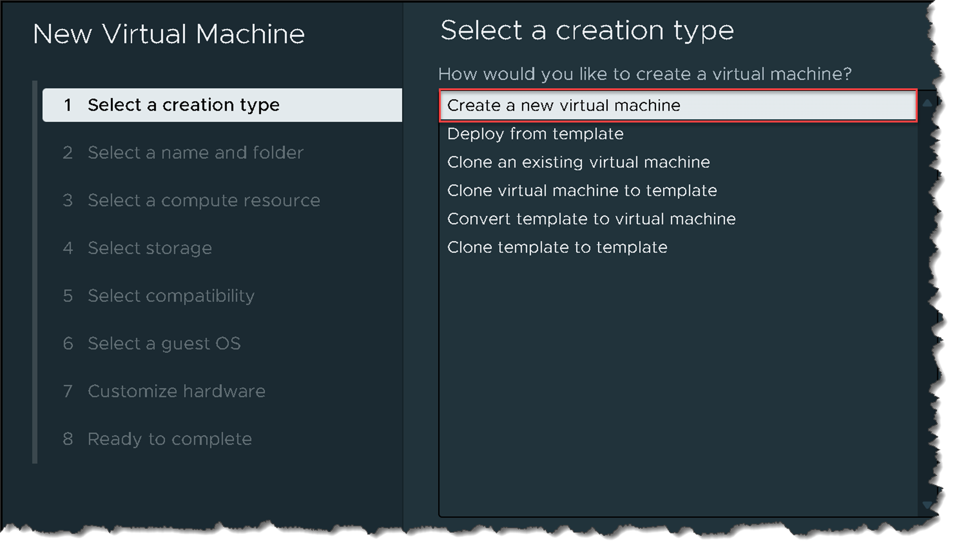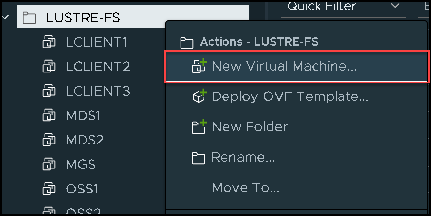 Access the hypervisor administration page, select the folder, right click, and then, “New Virtual Machine”: