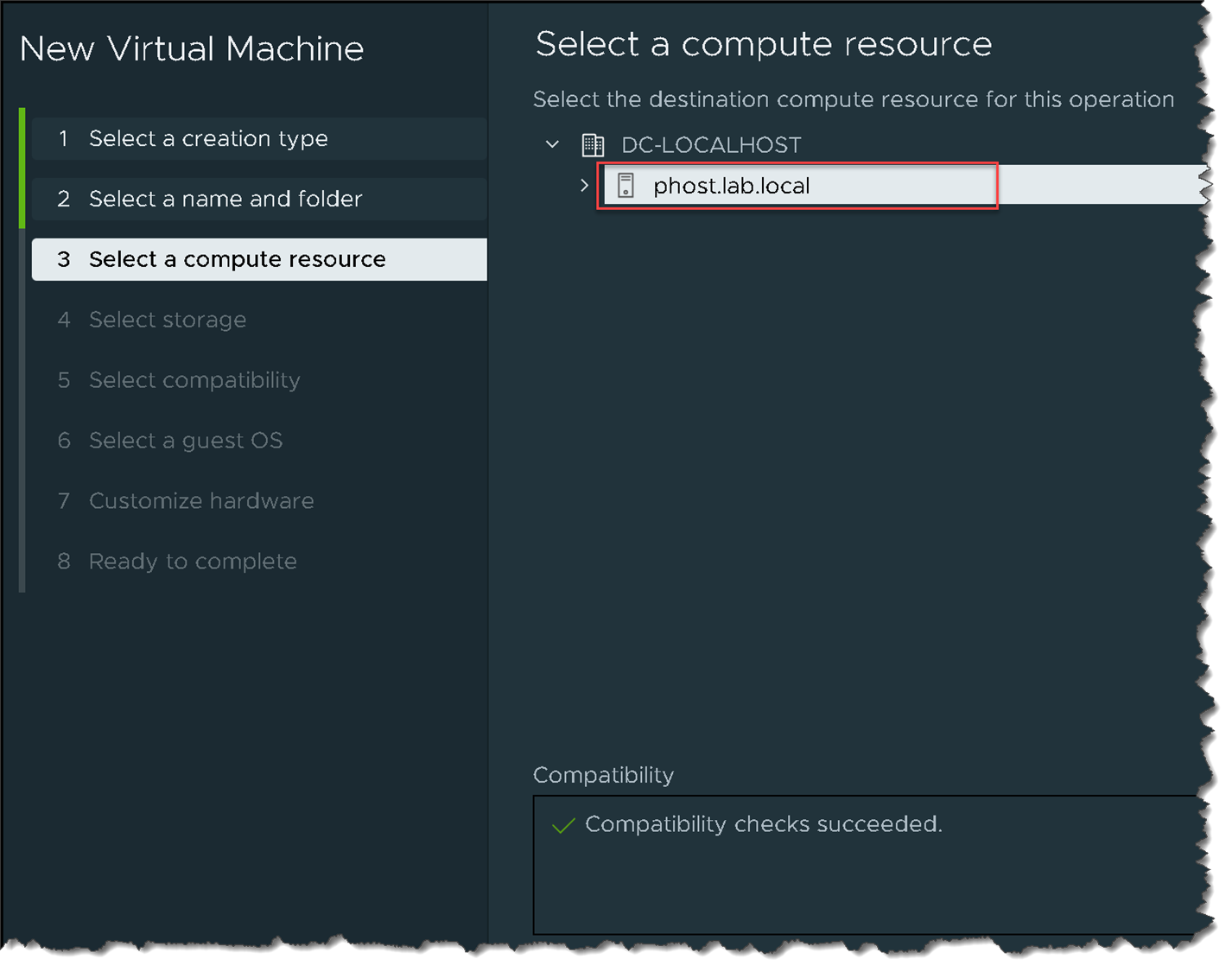 Since we have only one physical host, select it (if you have more than one host or a cluster, select the compute resource to satisfy this need):
