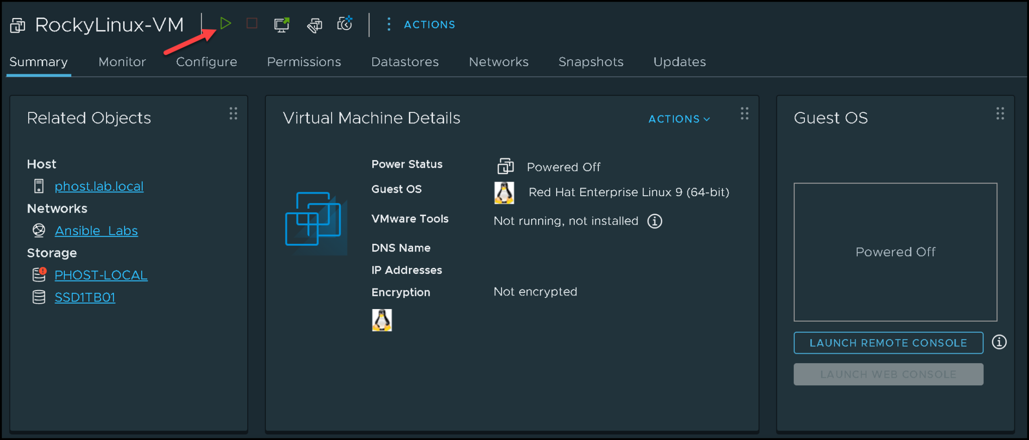 And now, click on the following icon to power up the virtual machine: