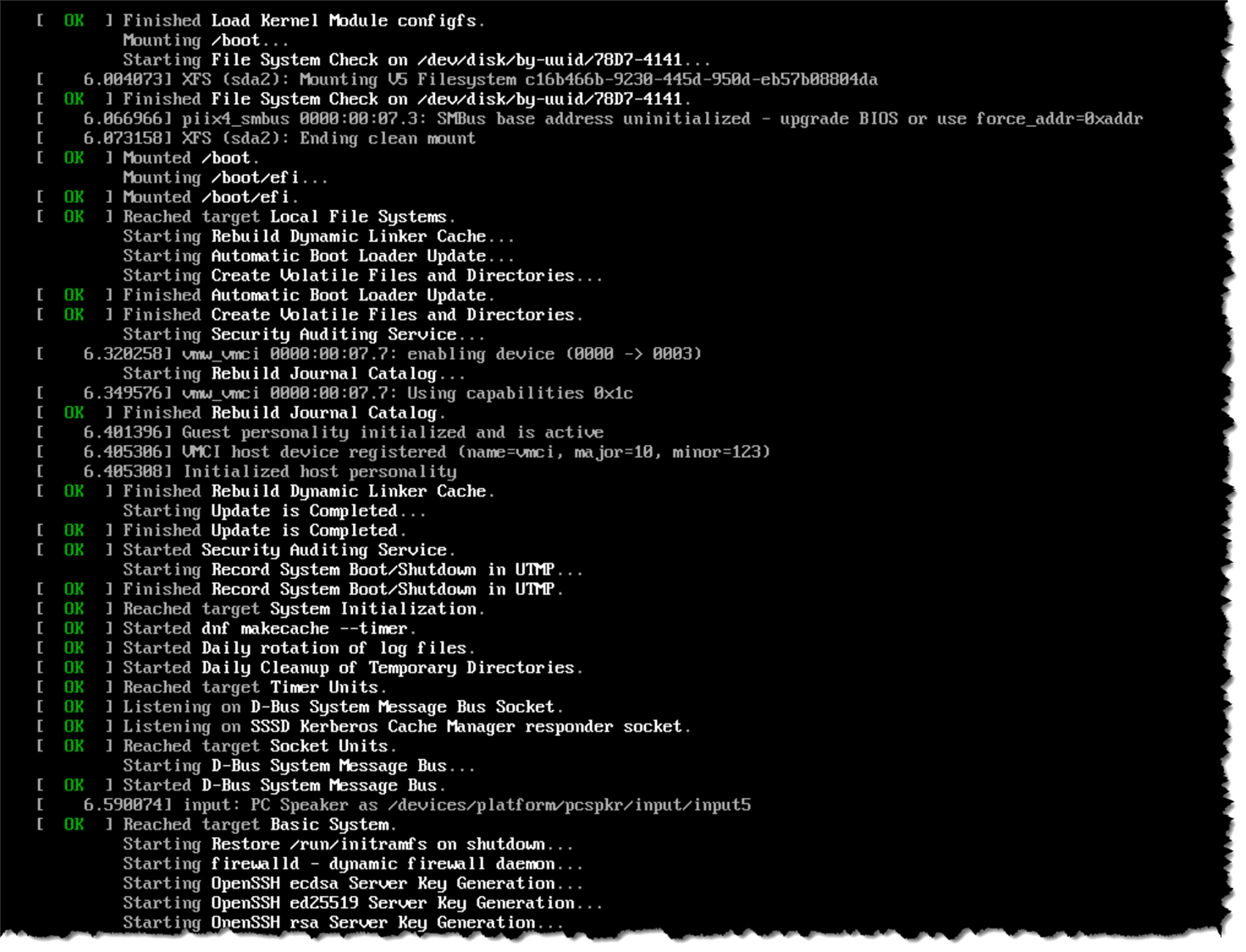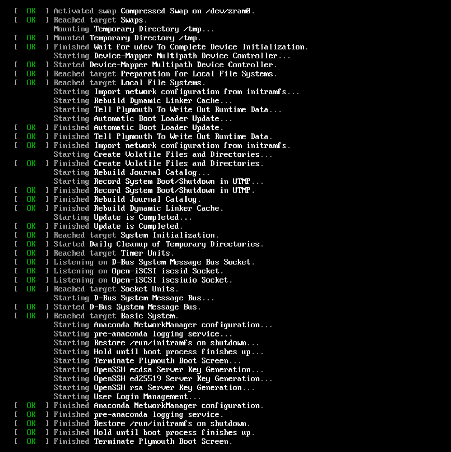 The system will be rebooted and started by the disk installation: