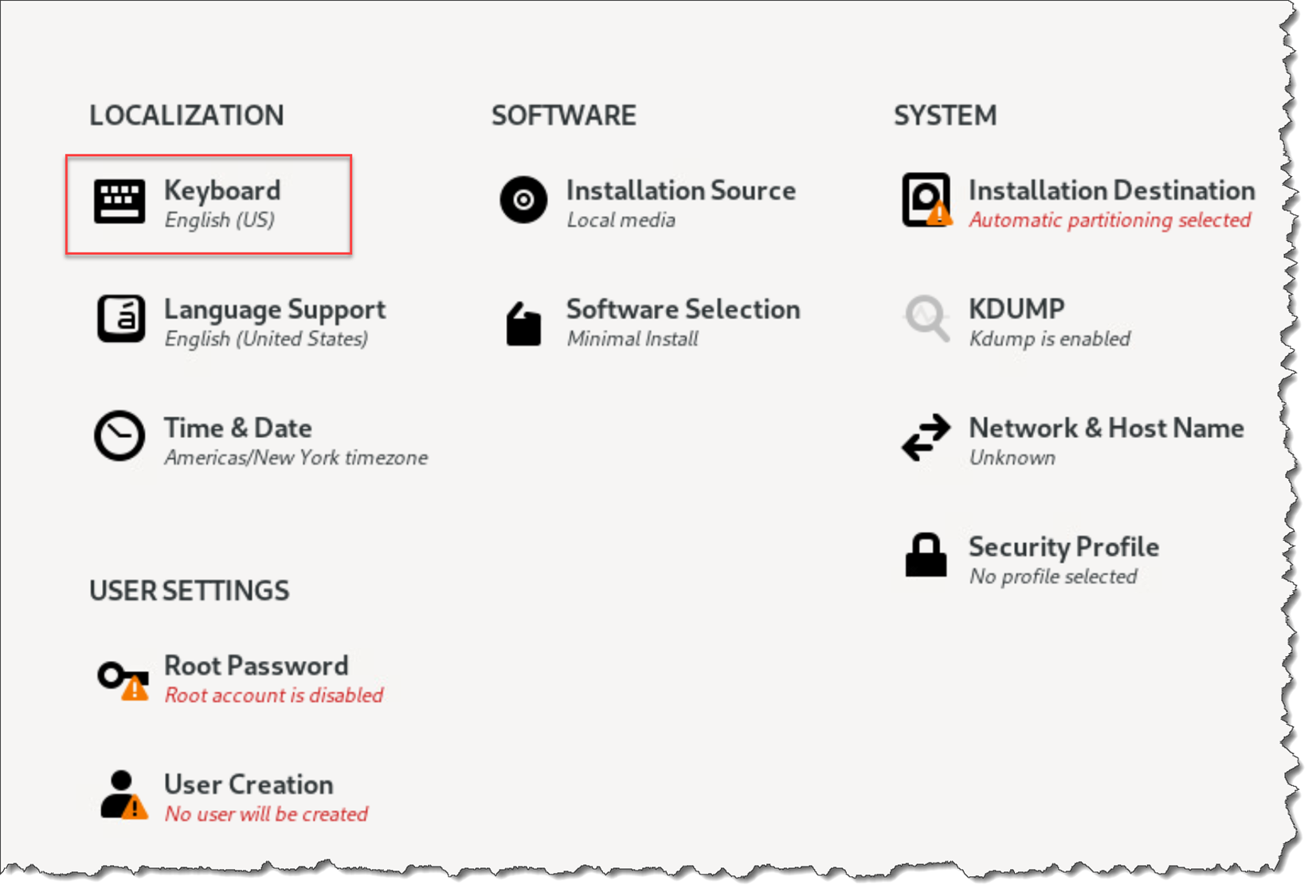 Under “Keyboard”, we can configure the keyboard layout – this is an important configuration: