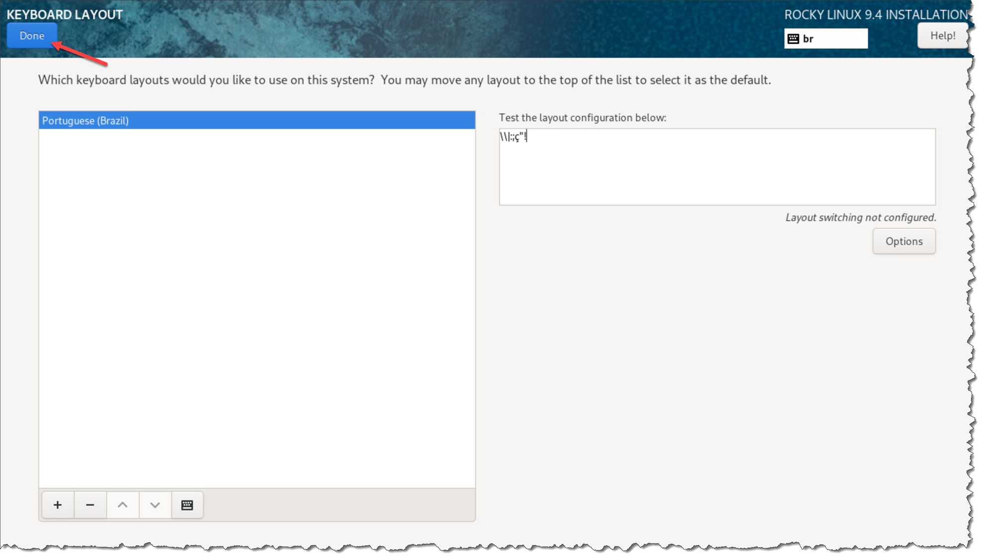 In our case, we removed the “English (US)” keyboard layout and added the “Portuguese (Brazil)” to fit our needs (you need to adjust it to fit your needs based on your location):