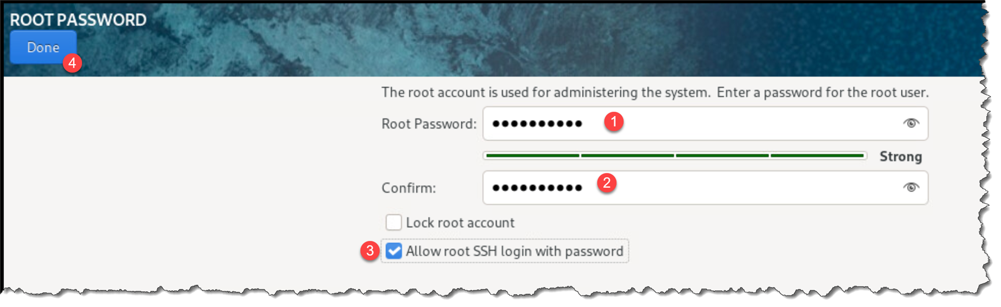 Create a root password: