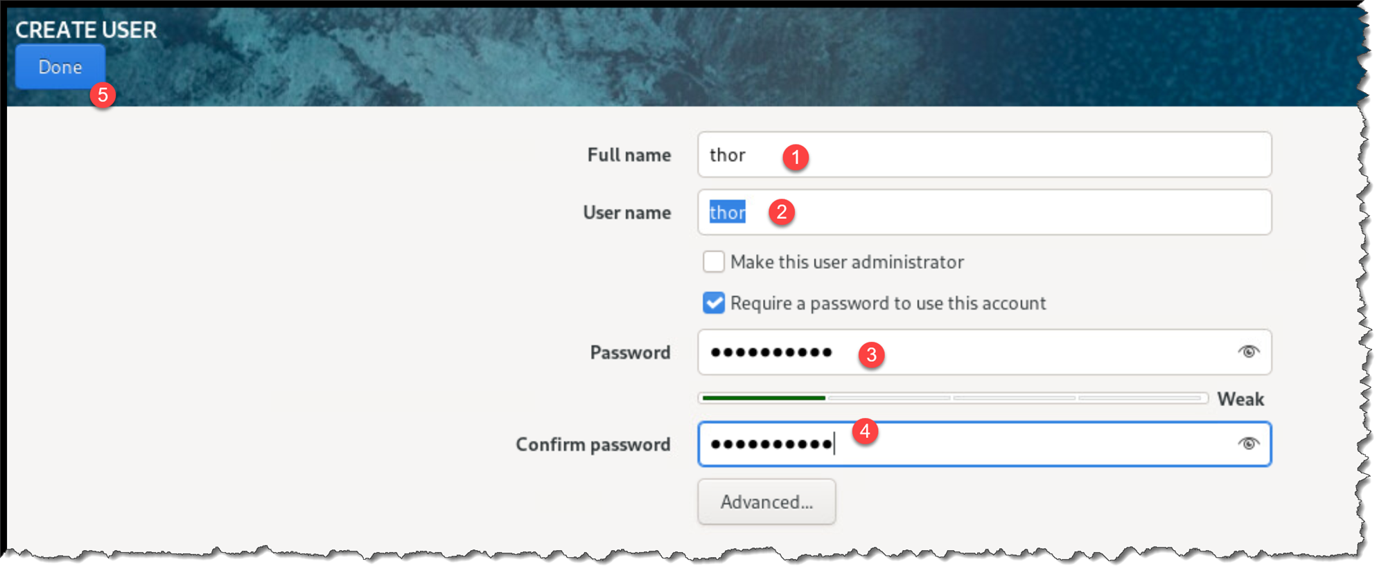 And optionally, create a “non-root” user – in this example, we’re creating a normal user named “thor”: