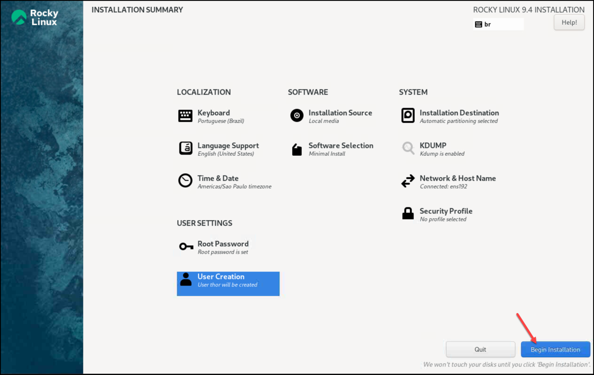 Click on “Begin Installation” to start the installation process: