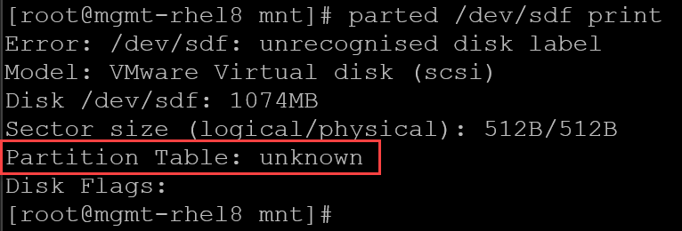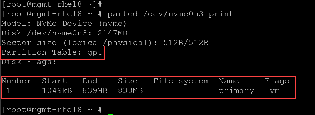 3- Inspect the disk partition table to confirm that the new partition has been created successfully: