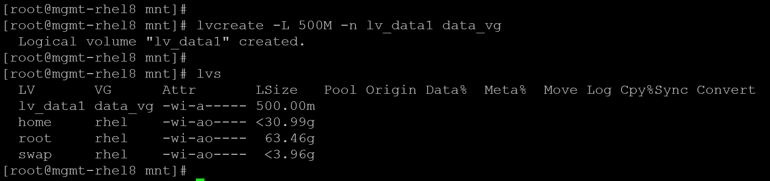 lvcreate -L 500M -n lv_data1 data_vg