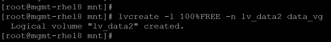 lvcreate -l 100%FREE -n lv_data2 data_vg