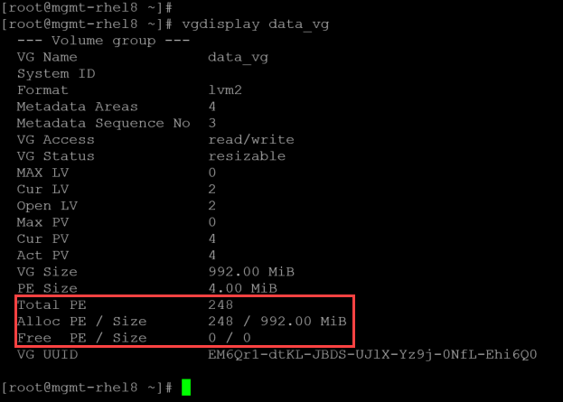 vgdisplay data_vg