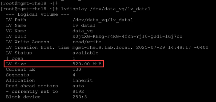 lvdisplay /dev/data_vg/lv_data1