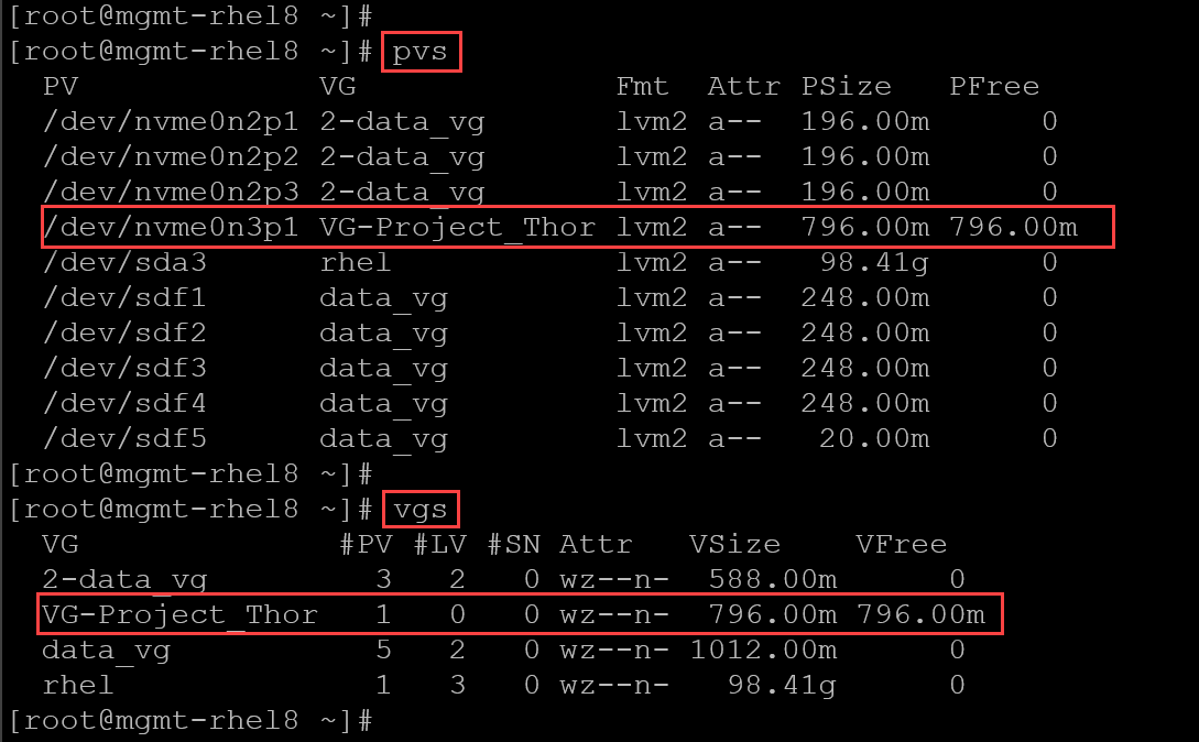 vgcreate VG-Project_Thor /dev/nvme0n3p1