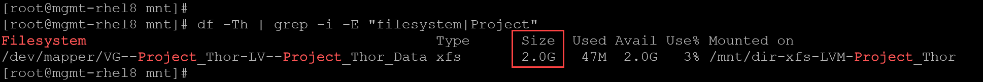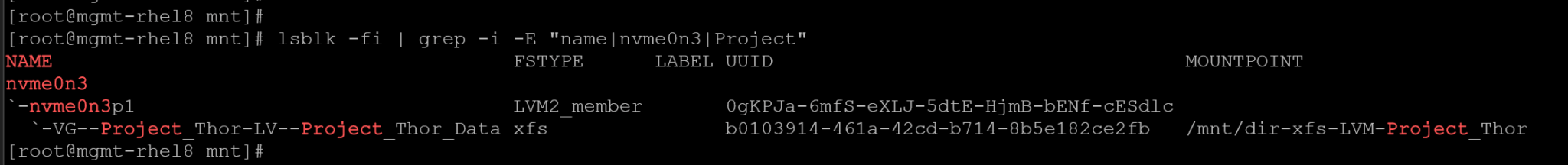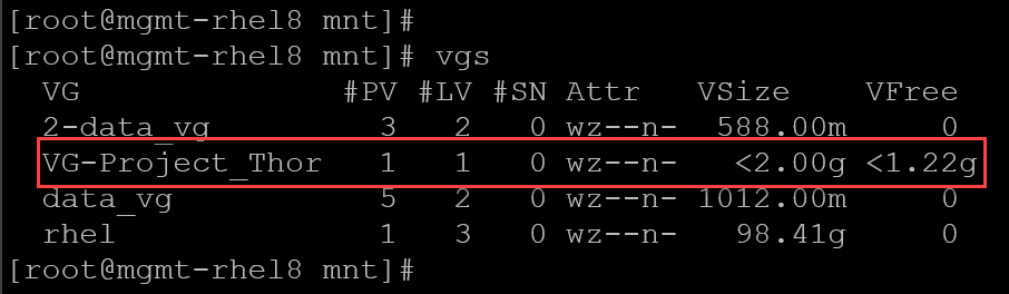 - A Volume Group (VG) named “VG-Project_Thor”.