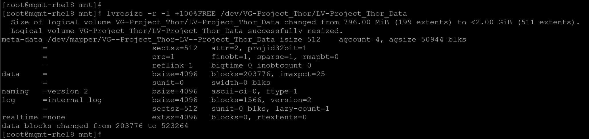 lvresize -r -l +100%FREE /dev/VG-Project_Thor/LV-Project_Thor_Data