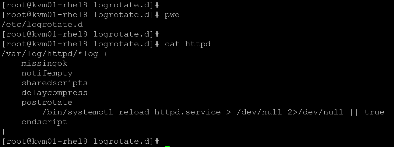 Note: Since logrotate runs daily via cron, no action is required to restart or take any other steps. However, we can do a manual invocation of the created file:
