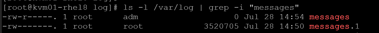 And, under the “/var/log”, we can confirm that the messages file was rotated (a file messages.1 was created and a new empty messages file was created as well):