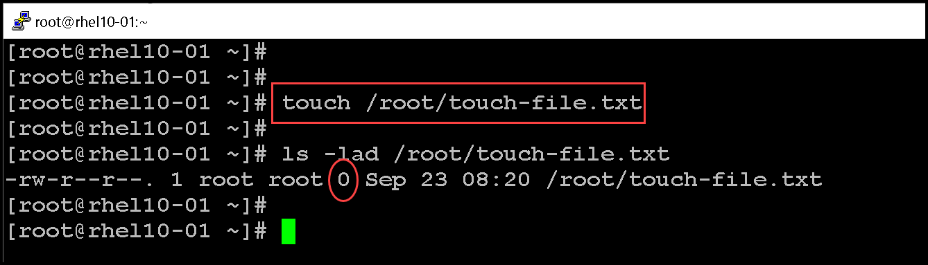 -rw-r--r--. 1 root root 0 Sep 23 08:20 touch-file.txt