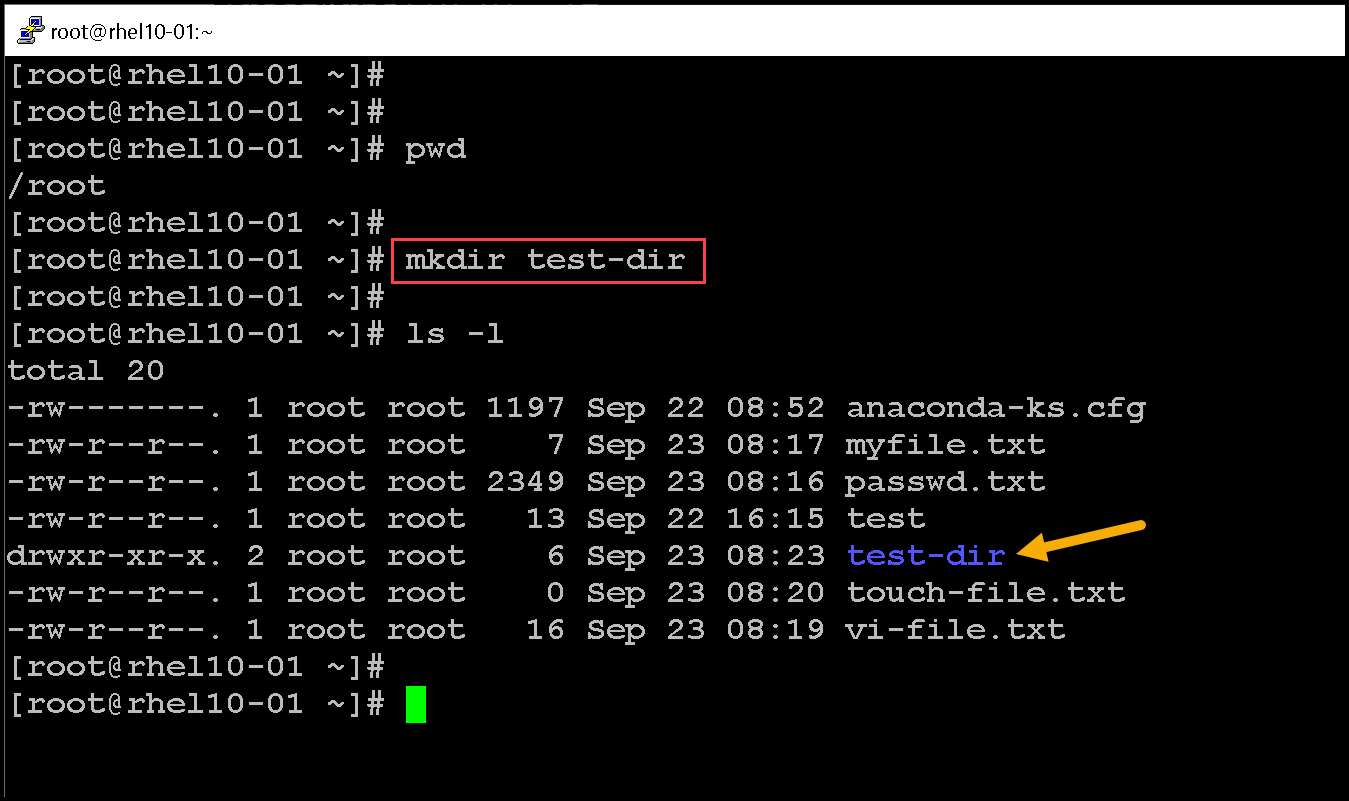 drwxr-xr-x. 2 root root 6 Sep 23 08:23 test-dir