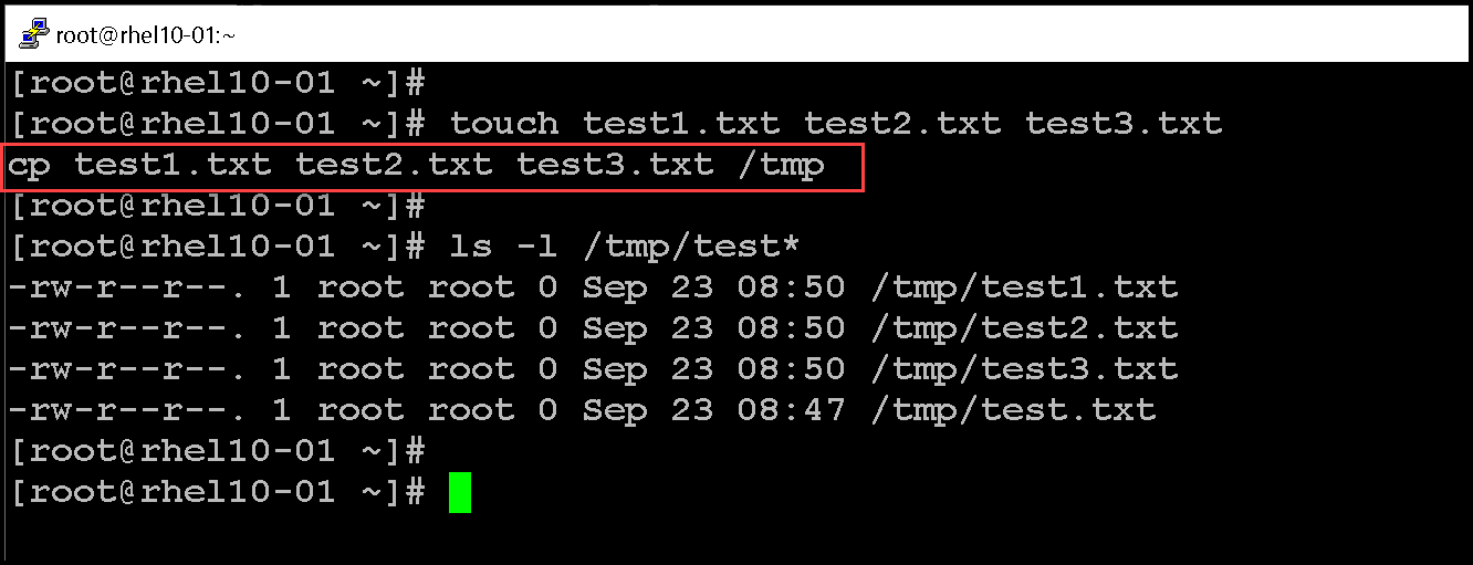 Let’s create multiple files and copy them to the /tmp directory: