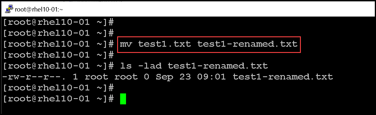 1- Let’s rename the file test1.txt to test1-renamed.txt in the same directory:
