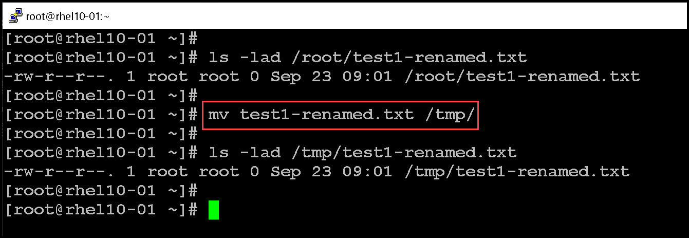 2- Let’s move the file test1-renamed from the root home directory to /tmp: