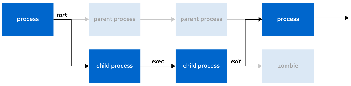 An existing parent process duplicates its own address space, which is known as a process fork, to create a child process structure. Every new process is assigned a unique process ID (PID) for tracking and security purposes. The PID and the parent’s process ID (PPID) are elements of the new process environment. Any process can create a child process. So, all processes are descendants of the first system process, systemd, on a Red Hat system: