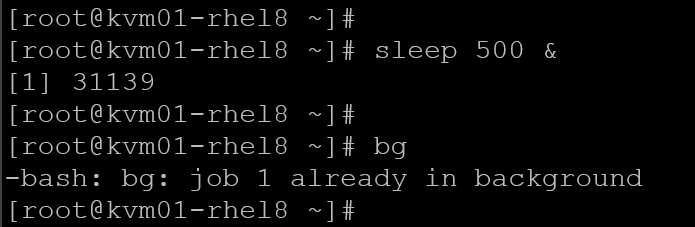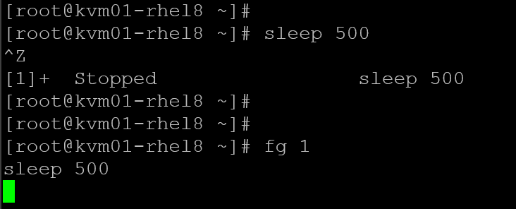 In the above picture, we ran the command “sleep 500”. Note that the command takes control of the terminal, preventing us from typing anything. This is a simple example of a program running in the foreground – we regain control of the terminal only when the program finishes, or we kill the program execution, or stop the program execution.