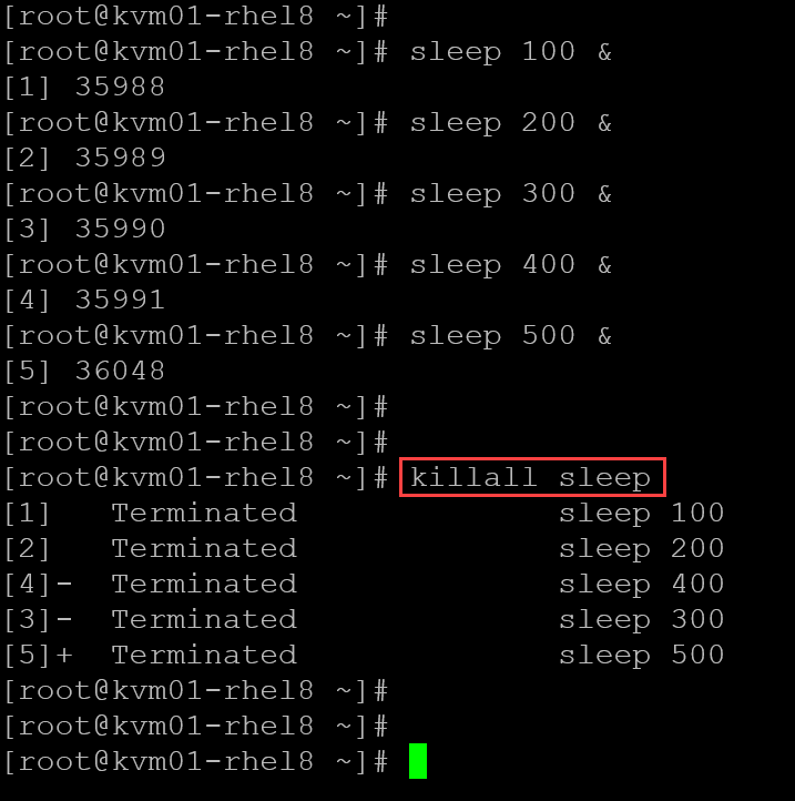 # Terminating the "sleep" process using the "SIGKILL" (9):