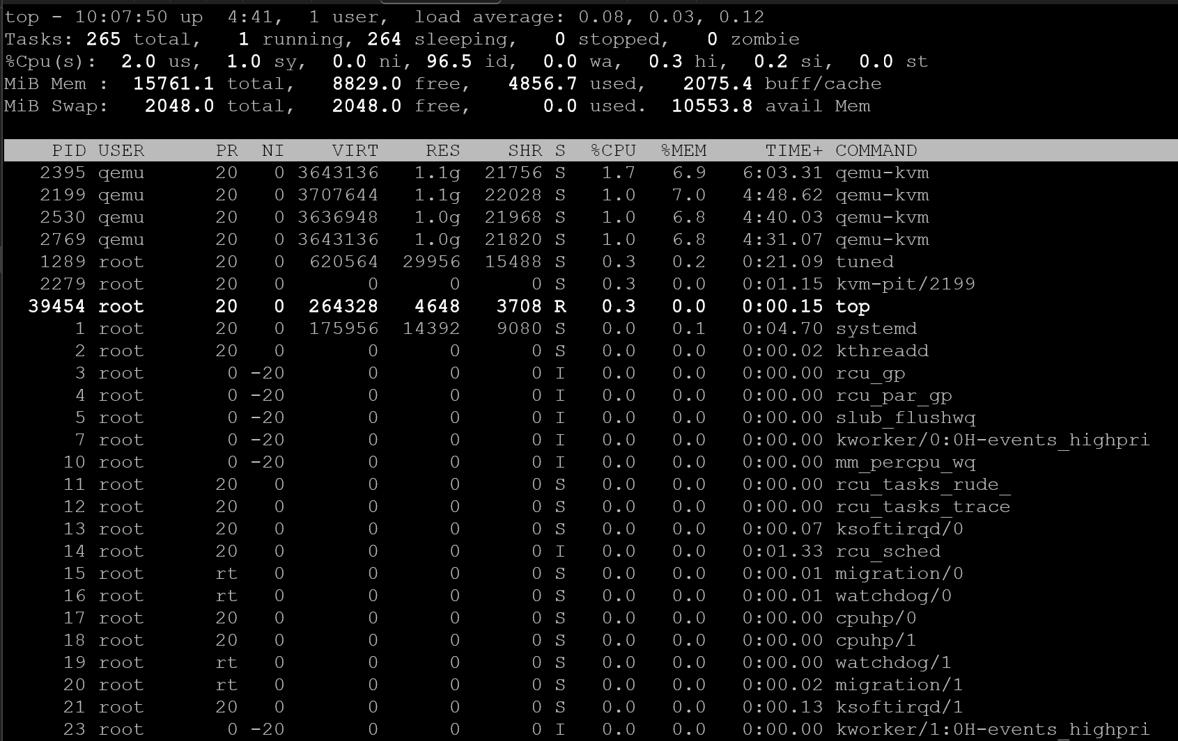 PID USER PR NI VIRT RES SHR S %CPU %MEM TIME+ COMMAND