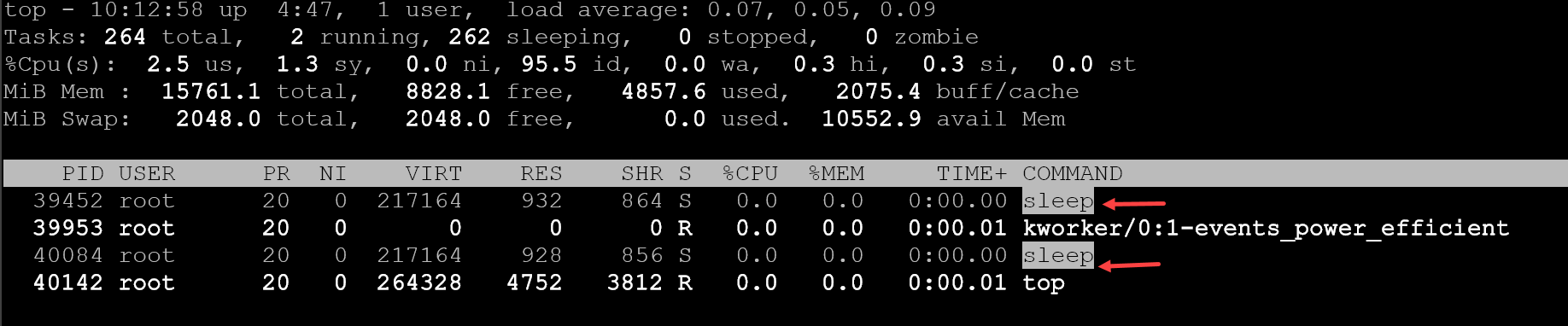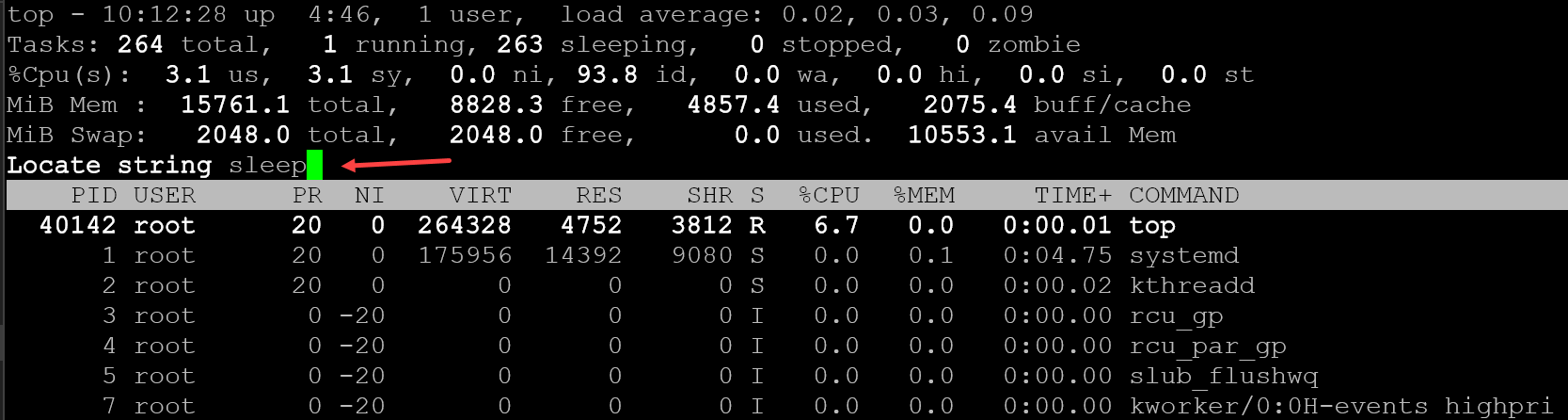 - For example, the string is “sleep” – we’re searching for all processes that contain “sleep” – press ENTER to start the search: