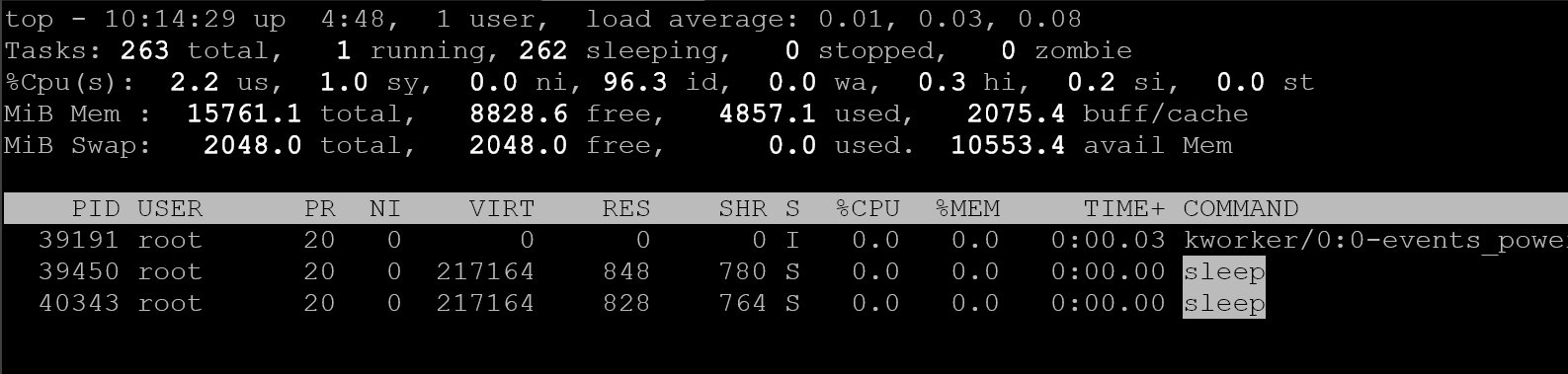 2 root 20 0 0 0 0 S 0.0 0.0 0:00.00 kthreadd