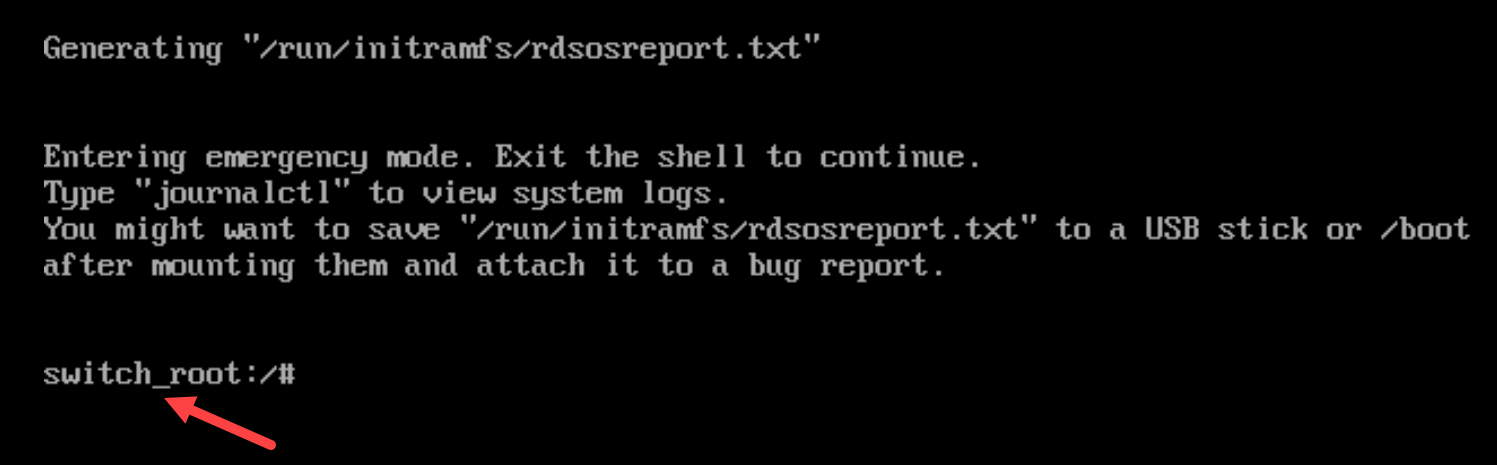 We will show a procedure to reset the root password by booting the system into the special mode. In this mode, the boot process stops before the system hands over control from the initramfs to the actual system.