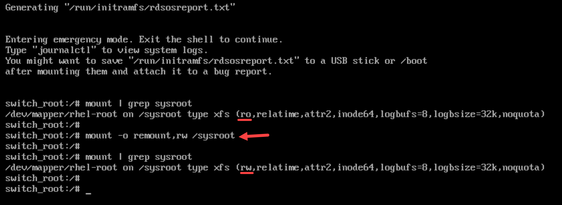 mount -o remount,rw /sysroot