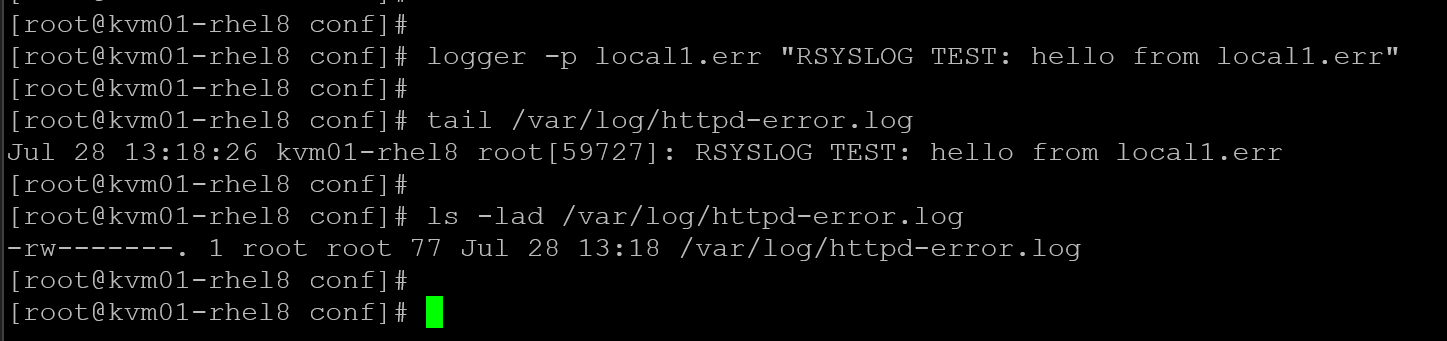 logger -p local1.err "RSYSLOG TEST: hello from local1.err"