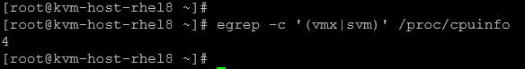 In our case, the result was four, meaning that our CPU has four cores with the required flags (vmx or svm):