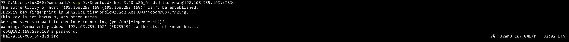 We’re using PowerShell for that, copying an ISO file from the local machine to the KVM host: