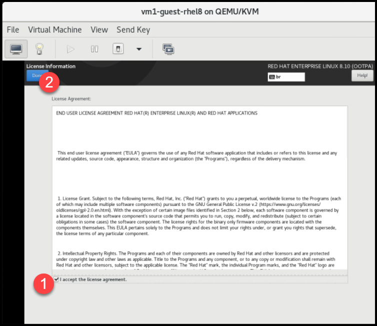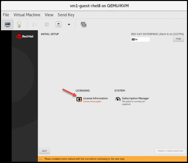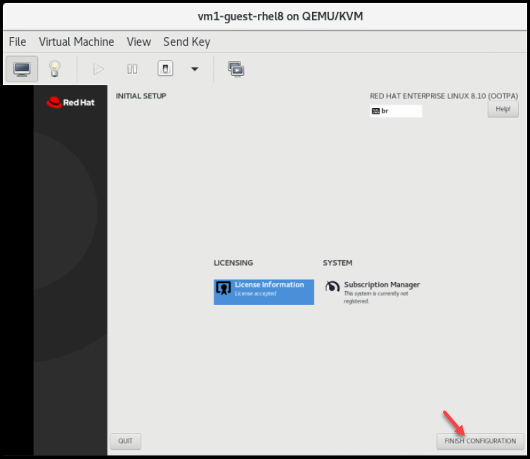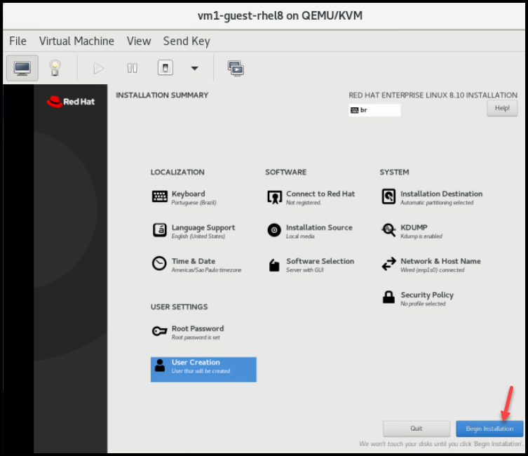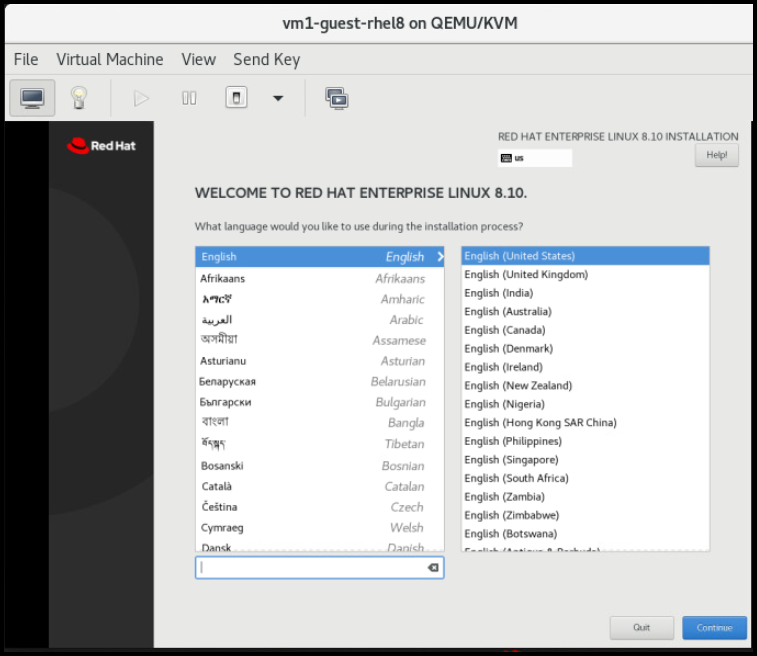 After finishing the virtual machine creation wizard, the Red Hat Installation wizard will appear – basically follow the default installation: