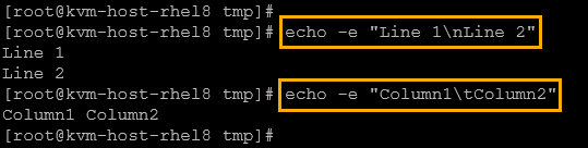 • echo -e –> interpret escape characters like \n (new line) or \t (tab).