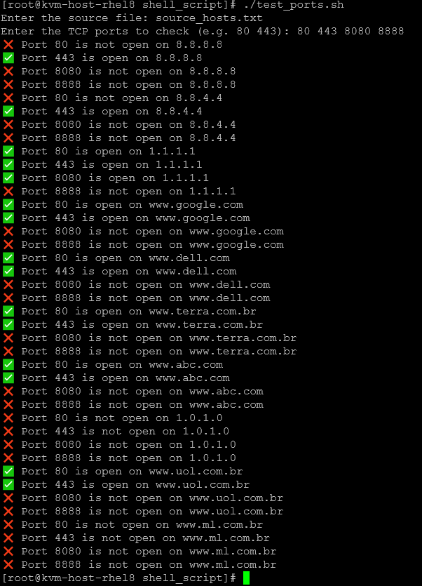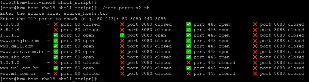 3- Shell Script for testing a TCP port for some hosts from a source file – v2: